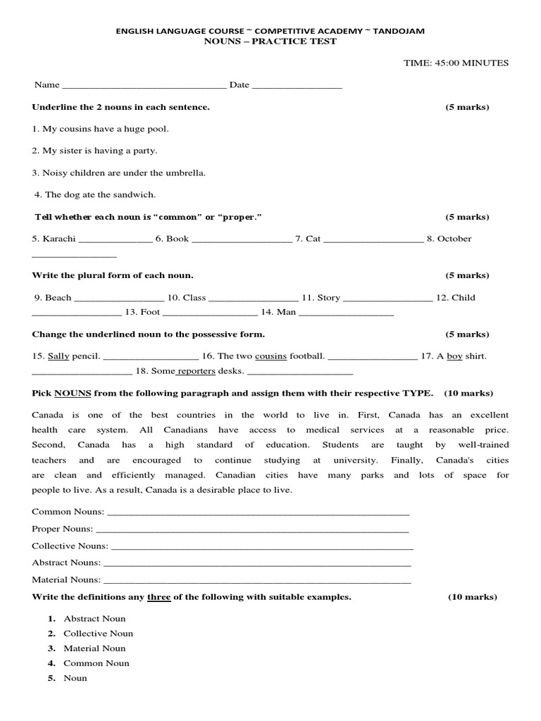 Noun Test Docx Noun Morphology