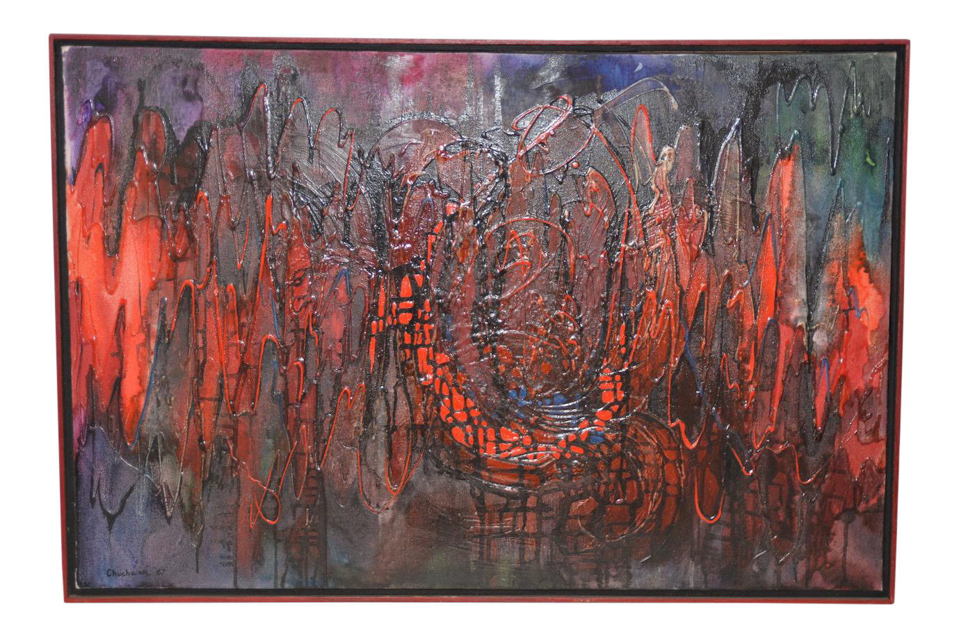 Vibrant Oil Abstract 1967 On Onekingslane Com Modern Painting