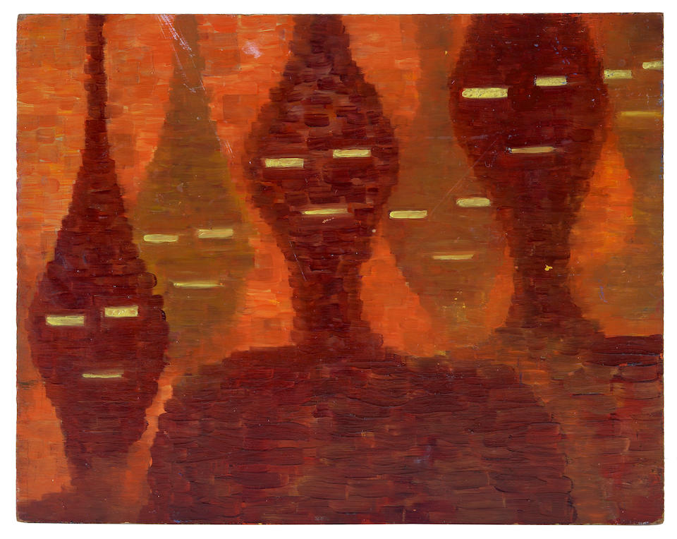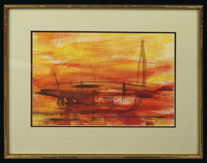 Vintage 1960s Acrylic Abstract Painting E K G By Chuchwar C