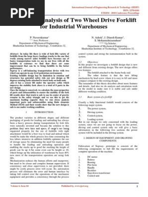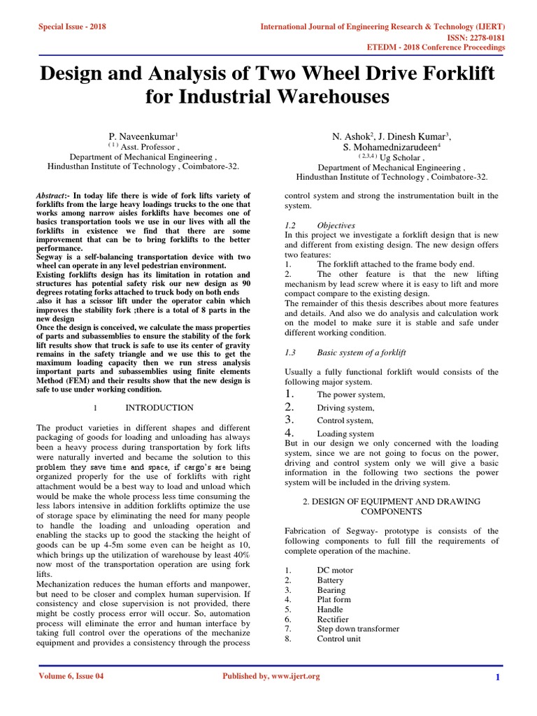 Https Www Ijert Org Research Design And Analysis Of Two Wheel Drive Forklift For Industrial Warehouses Ijertconv6is04053 Pdf