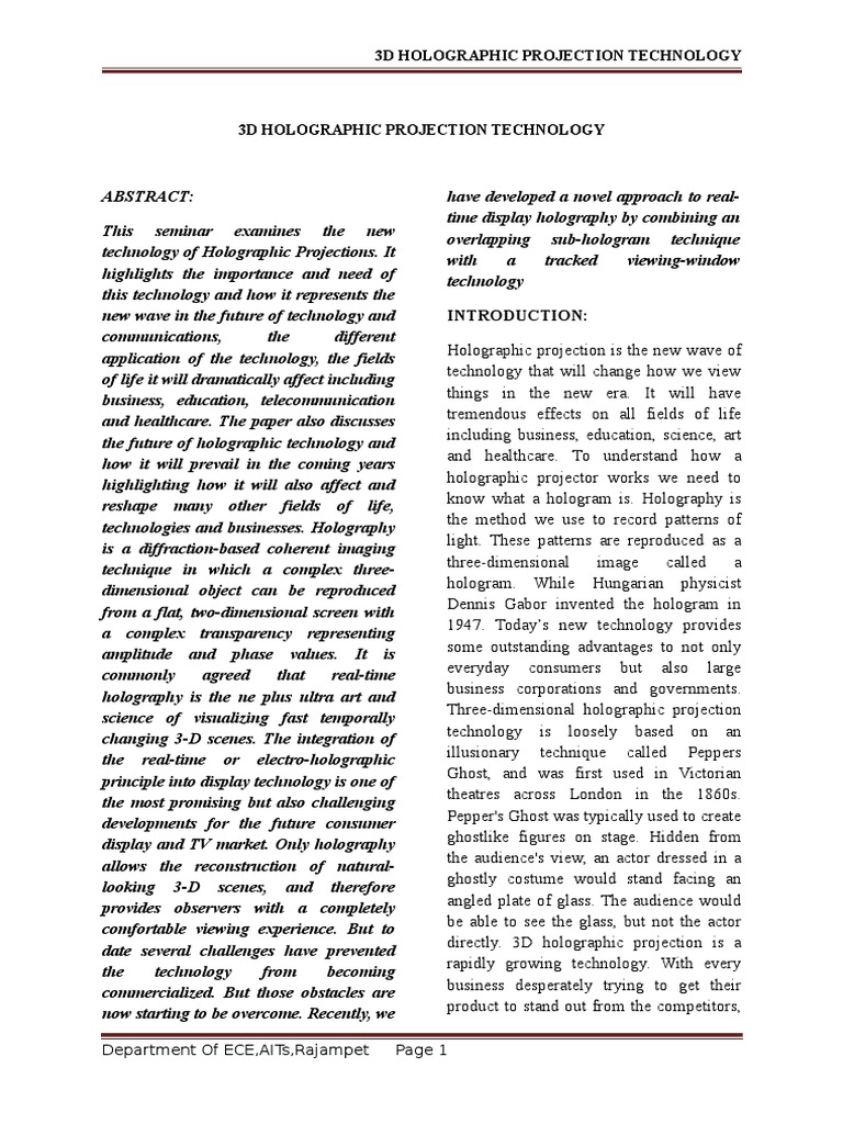 Holographic Projection Technology The World Is Changing Pdf