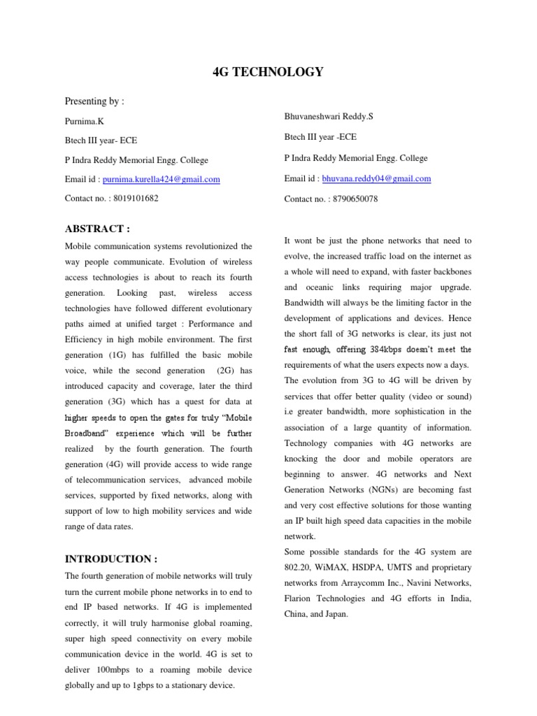 4g Quadruple Play High Speed Mobile Broadband Technologies Pdf