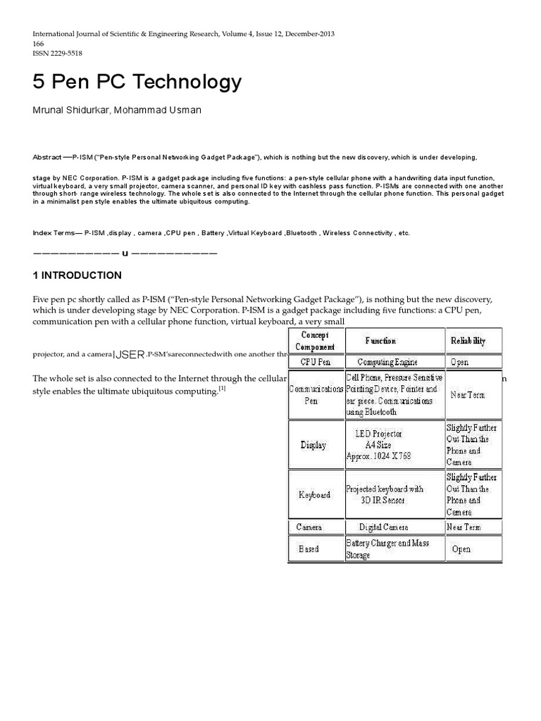 Abstract Of 5 Pen Pc Technolgy Docx Cellular Network Central