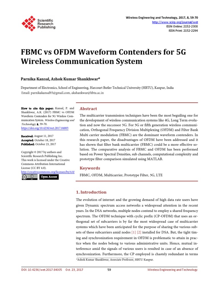Fbmc Vs Ofdm Waveform Contenders For 5g Wireless Communication System Orthogonal Frequency Division Multiplexing Filter Signal Processing