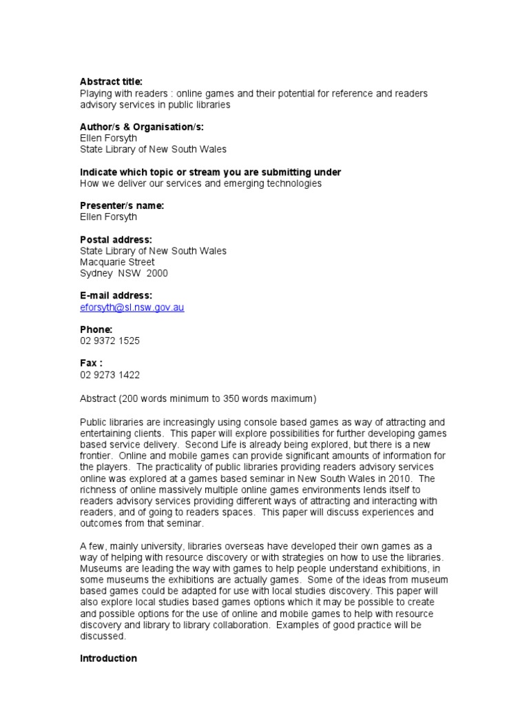Abstract Title Playing With Readers Online Games And Their