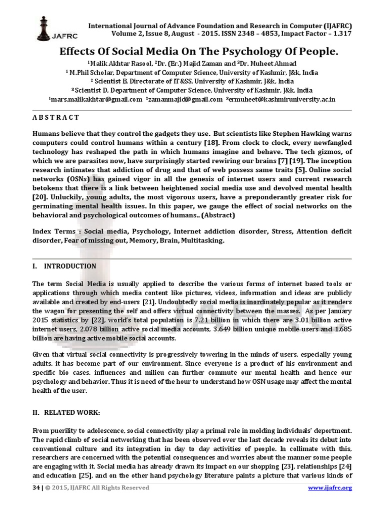 Social Media And Its Effects On Individuals And Social