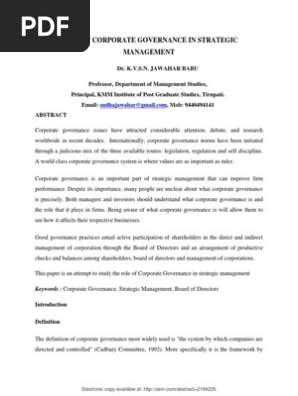 Strategic Management Of Research And Development A Literature