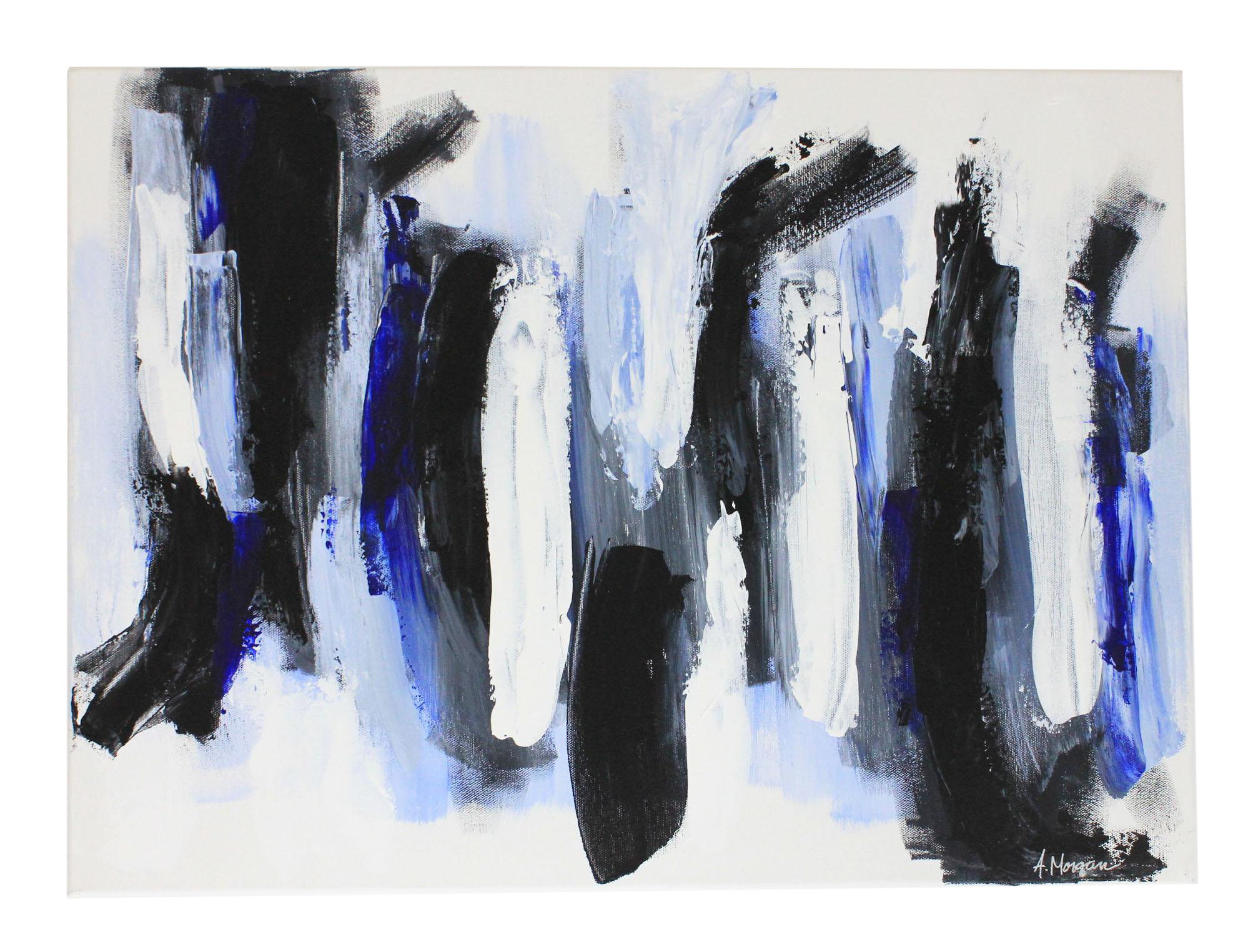 Silver Race Abstract Acrylic Painting Canvas Wall Art Blue White
