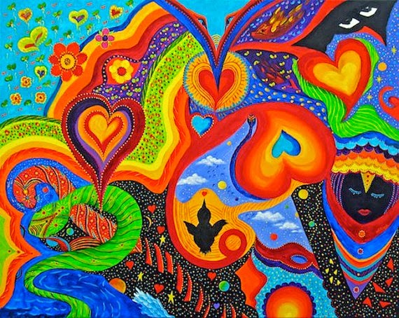 Original Abstract Acrylic Painting Contours Angel Hearts