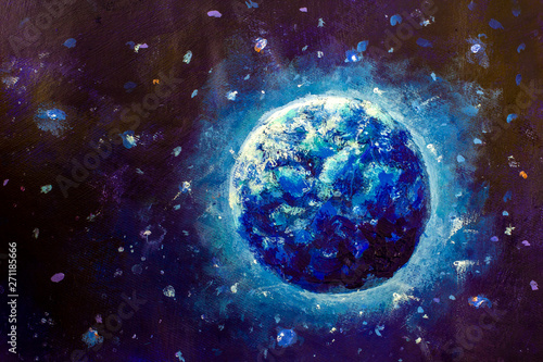 Acrylic Painting Stars And Planets With Abstract Texture Made With