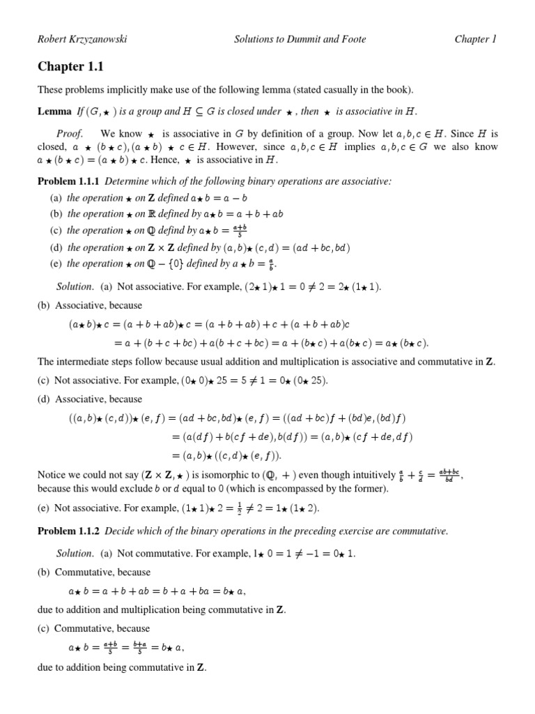 Solutions To Abstract Algebra Chapter 1 Dummit And Foote 3e