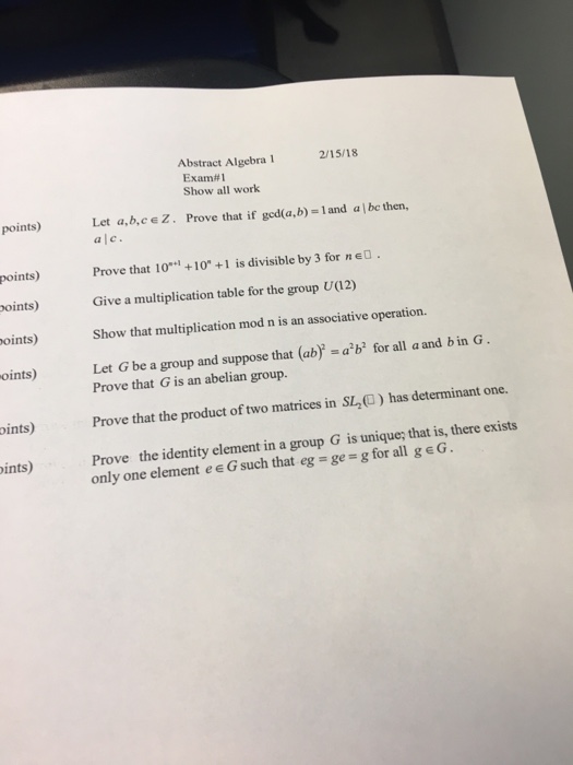 Fundamental Theorem Abstract Algebra Exam Docsity