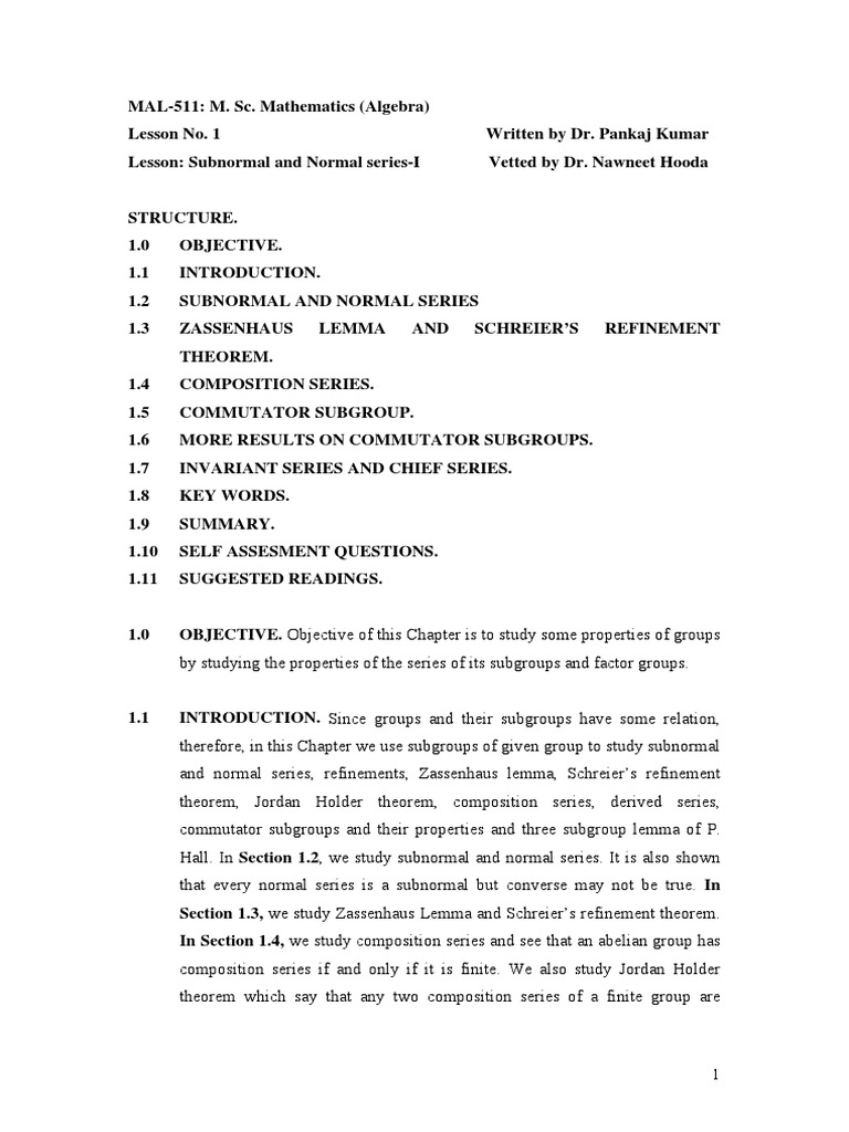 Modern Algebra Notes Normal And Subnormal Series Field