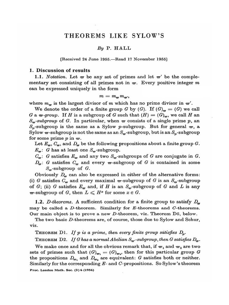 A Proof Of Sylow Theorem Group Theory Abstract Algebra Free