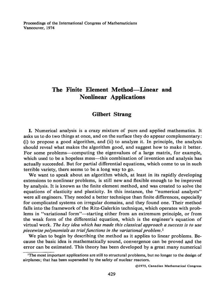 Fem Strang Finite Element Method Numerical Analysis