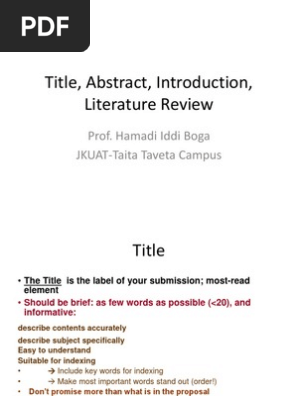 Title Abstract Introduction Literature Review