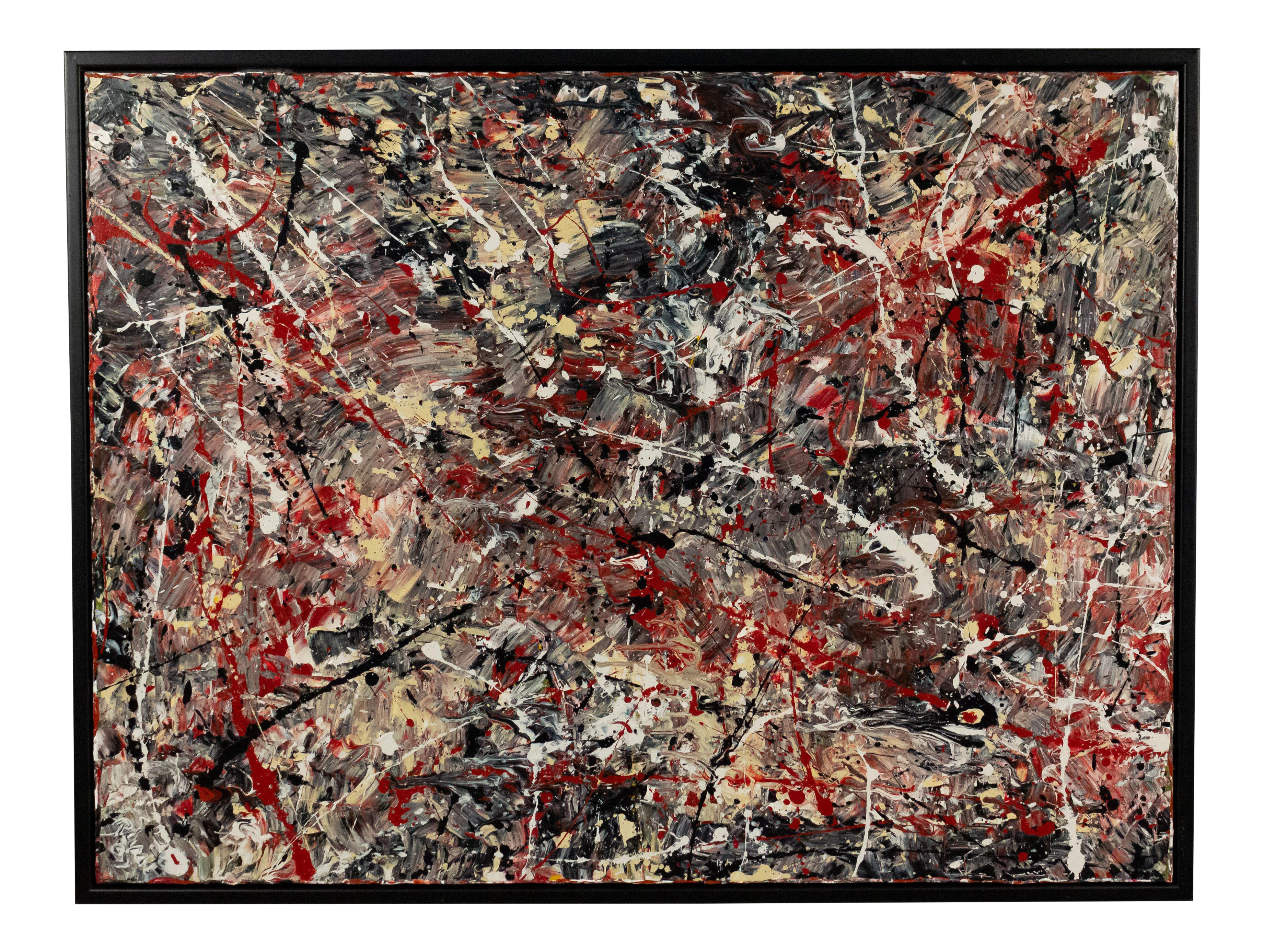 Stephen Brophy Black White And Red Abstract Modern Graphic Oil Painting With Slim Black Frame For Sale At 1stdibs