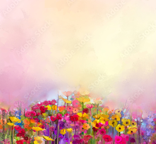 Abstract Colorful Oil Acrylic Painting Of Spring Flower Hand