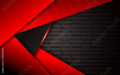 Abstract Metallic Red Black Frame Layout Modern Tech Design