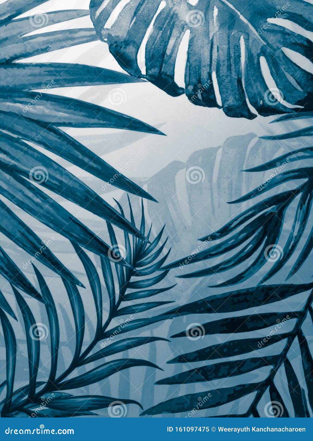 Beautiful Abstract Dark And Blue Leaves On White With A Natural