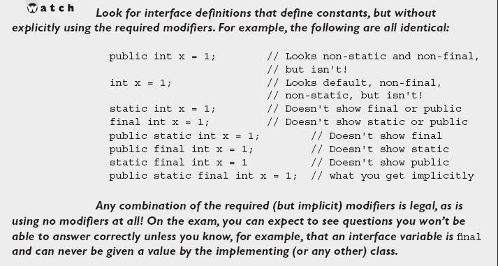 An interface only has method declarations or abstract methods and constant data members while an abstract class may have abstract methods member. Constants differ from normal variables in that you dont use the symbol to declare or use them. Abstract classes serve as templates for their subclasses. Hence any data declaration is public static final.