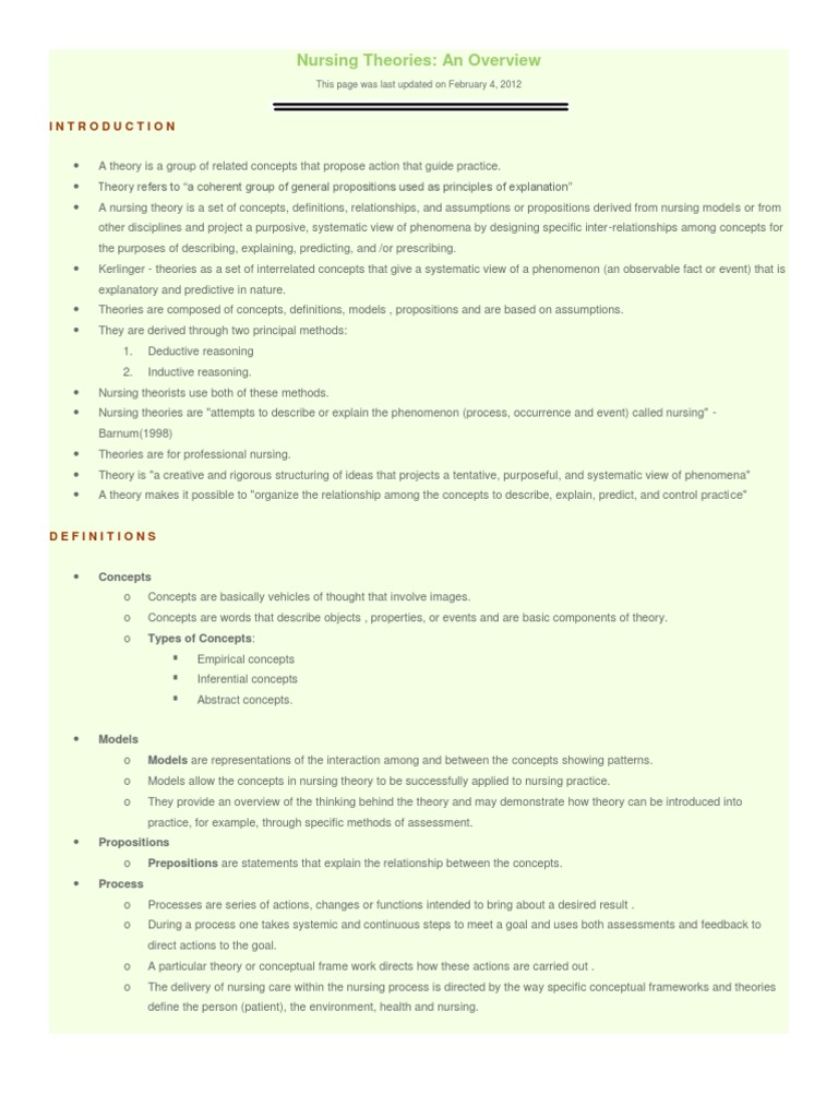 Role Of The Nurse Introducing Theories And Concepts