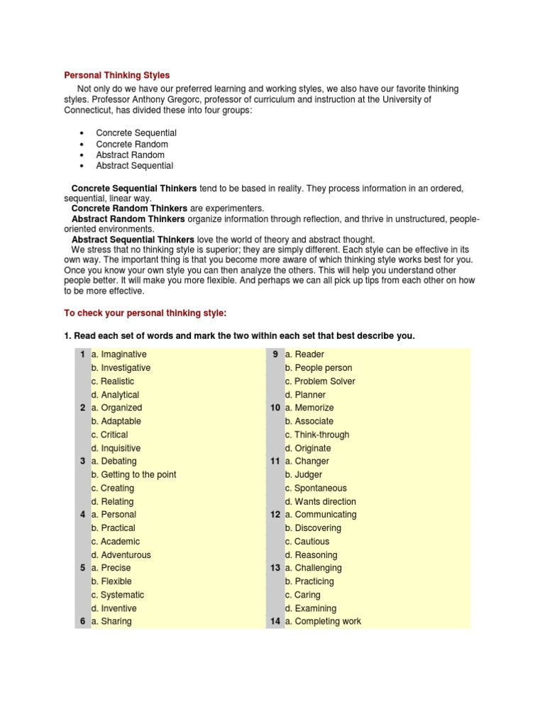 Learning Styles Gregorc Paperblog