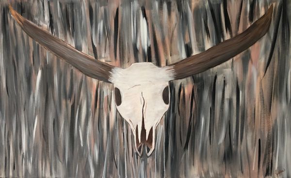 Steerskull Vibrant And Colorful Abstract With Feathers Cow