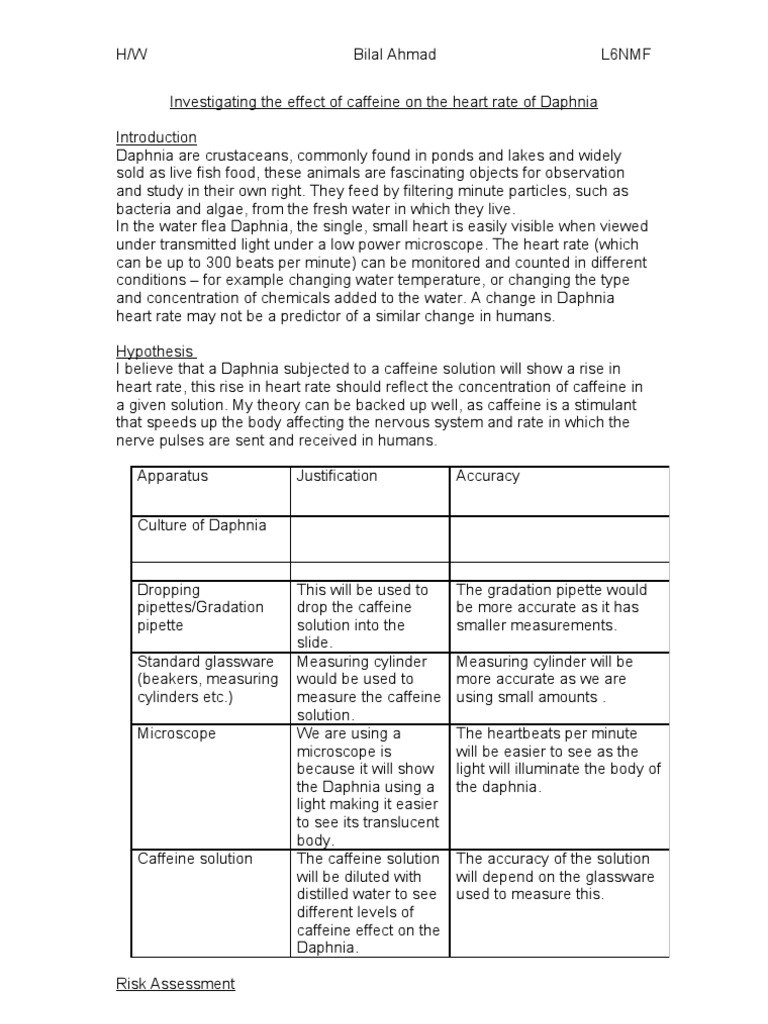 Investigating The Effect Of Caffeine On The Heart Rate Of Daphnia