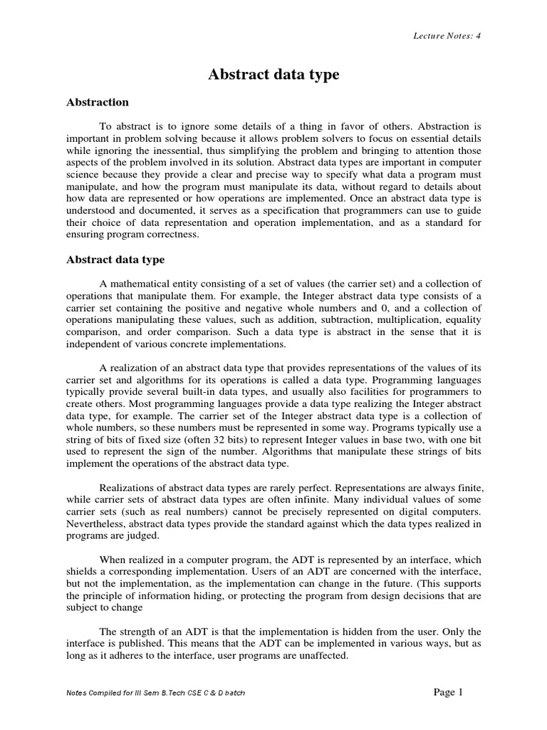 Fit2024 Lecture Notes Fall 2016 Lecture 1 Abstract Data Type