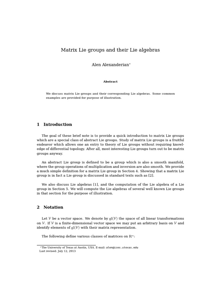 Liegroups Pdf Lie Groups Lie Algebra