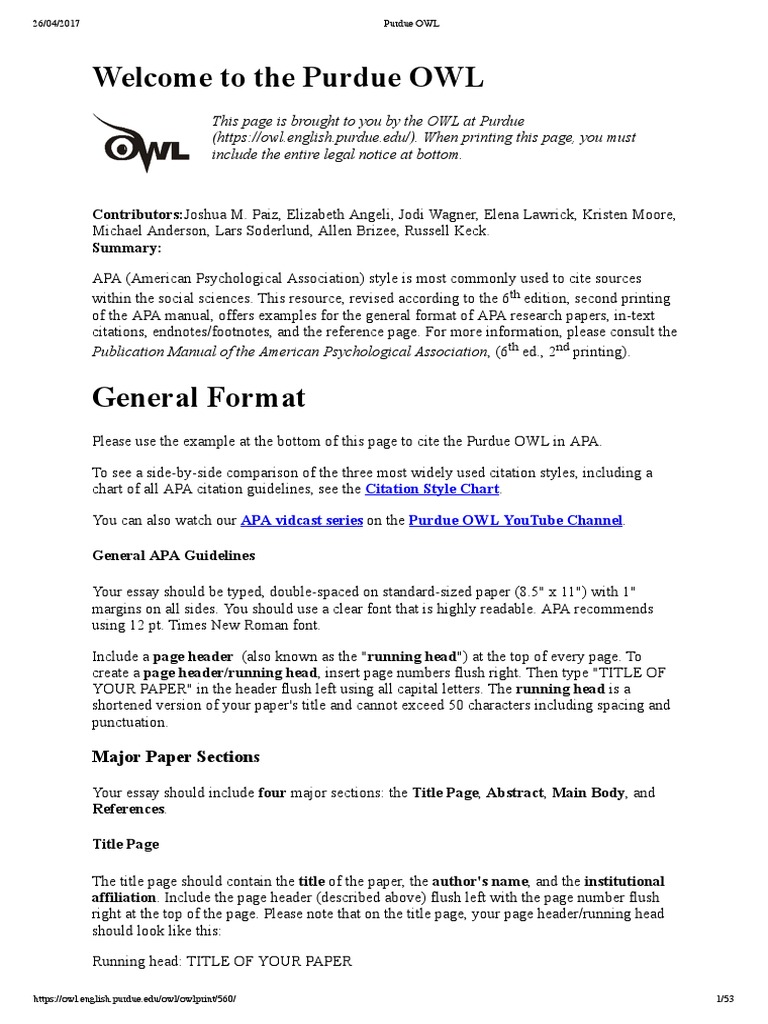 Apa Sample Paper Purdue Owl Kinesiology Libguides At