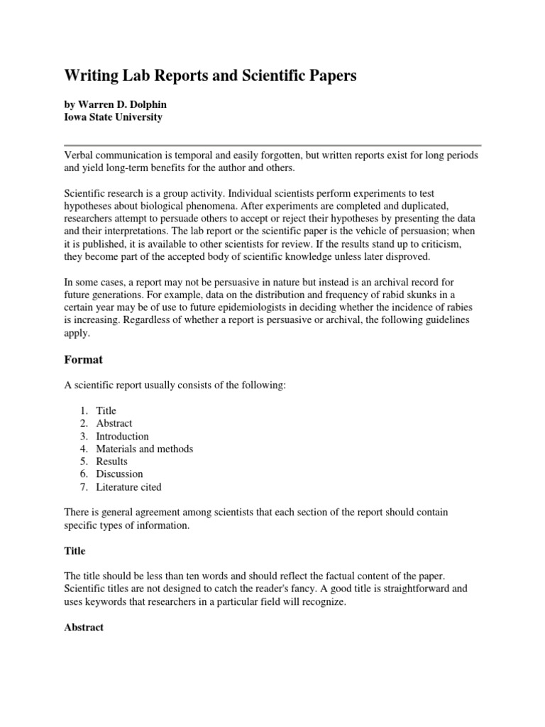 How To Write A Science Lab Report Abstract Science Fair Project