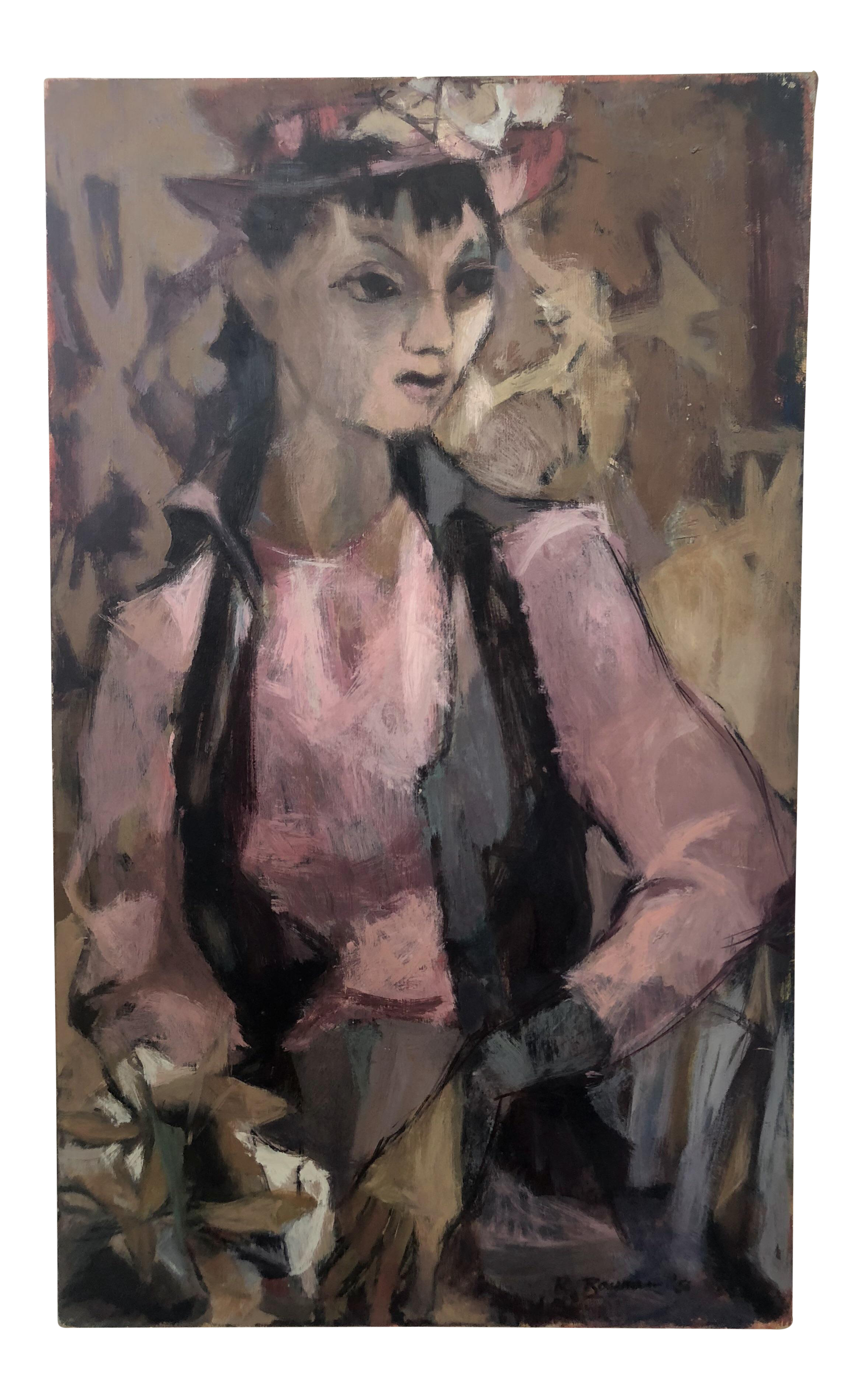 Vintage 1956 Abstract Expressionist Portrait Of A Woman Painting Chairish