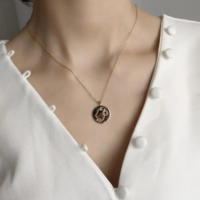 Romad Abstract Face Necklace Pendant Sterling Silver Color Necklace Gold Necklace Choker Chain For Women Fashion Jewelry R2 Aliexpress