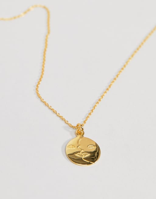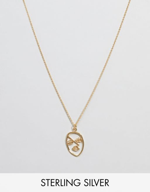 Asos Denim Design Gold Plated Sterling Silver Abstract Face Necklace In Metallic Lyst