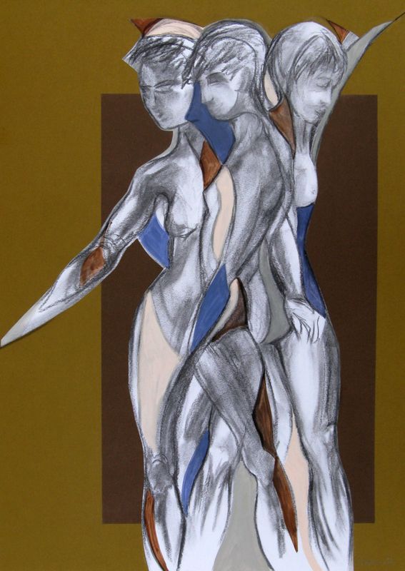 Original Abstract Female Figure Mixed Media Painting Unframed