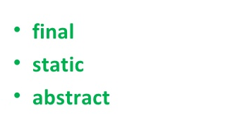 Thats why java compiler throws a compile time error when you try to make an abstract class final in java. Final is a restrictive modifier used to prevent extension of a class or prevent overrides on methods while the abstract modifier signals the intention to use a class as a base class. The keywords public and abstract cannot be used together. Static final abstract synchronized volatile transient and native.