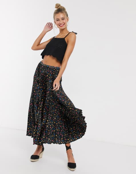 Closet London Pleated Midi Skirt In Orange Abstract Floral Print