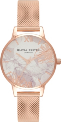 Ladies Abstract Florals Silver Mesh Watch Olivia Burton London