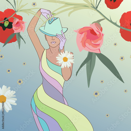 Abstract Sketch Models Floral Dresses Poppy Stock Vector Royalty