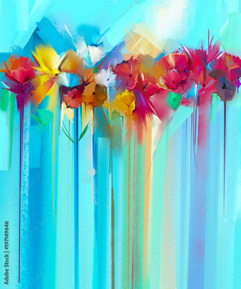 Original Acrylic Painting On Canvas Pink Flowers Vase With Colourful Flowers And Blue Background Home Decor Acrylic Painting Canvas Painting Canvas Painting