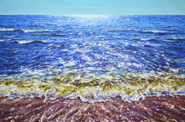 Original Painting Abstract Folk Art Ocean Tree Shadows Modern