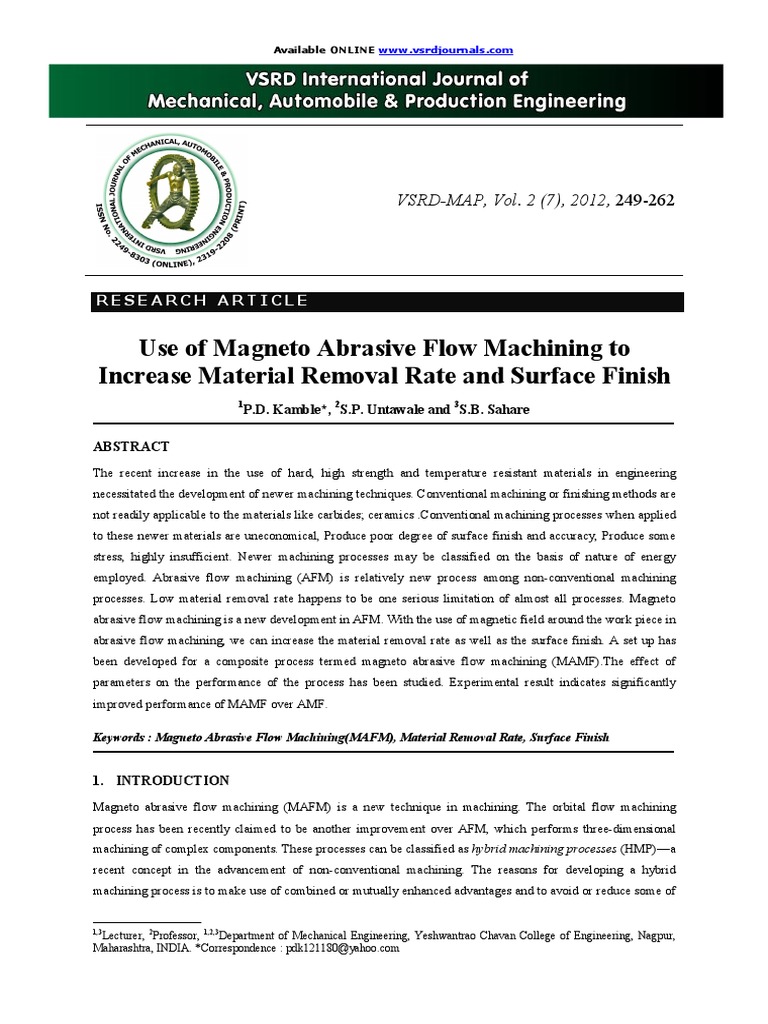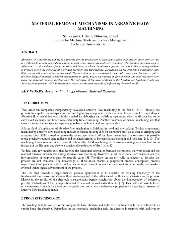 Pdf Developments In Abrasive Flow Machining A Review On