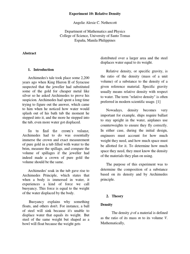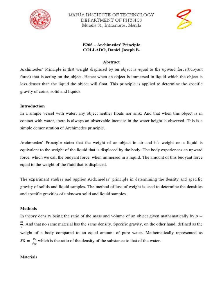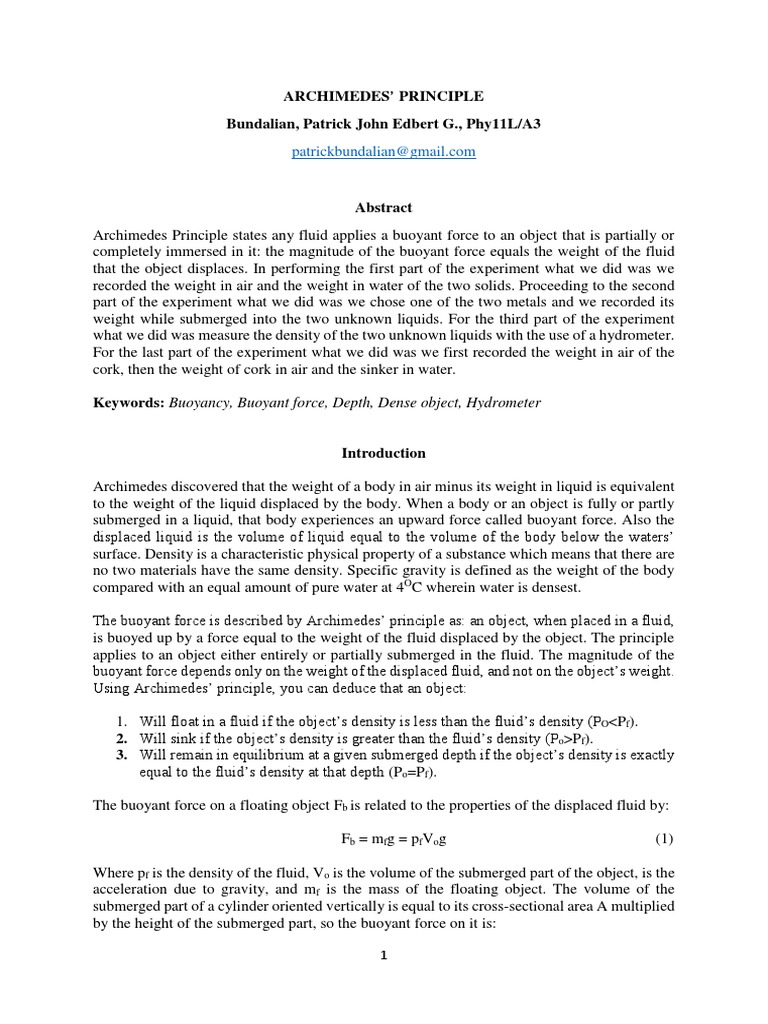 Archimedes Principle Buoyancy Force Why Denser Bodies Sink In