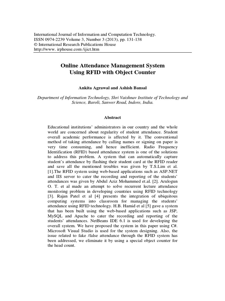 Pdf Development Of Attendance Management System Using Biometrics