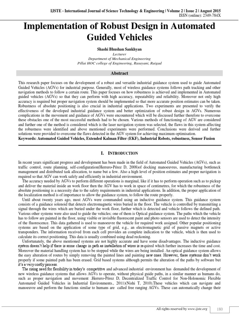 Some Analysis Of Automated Guided Vehicle Scientific Net