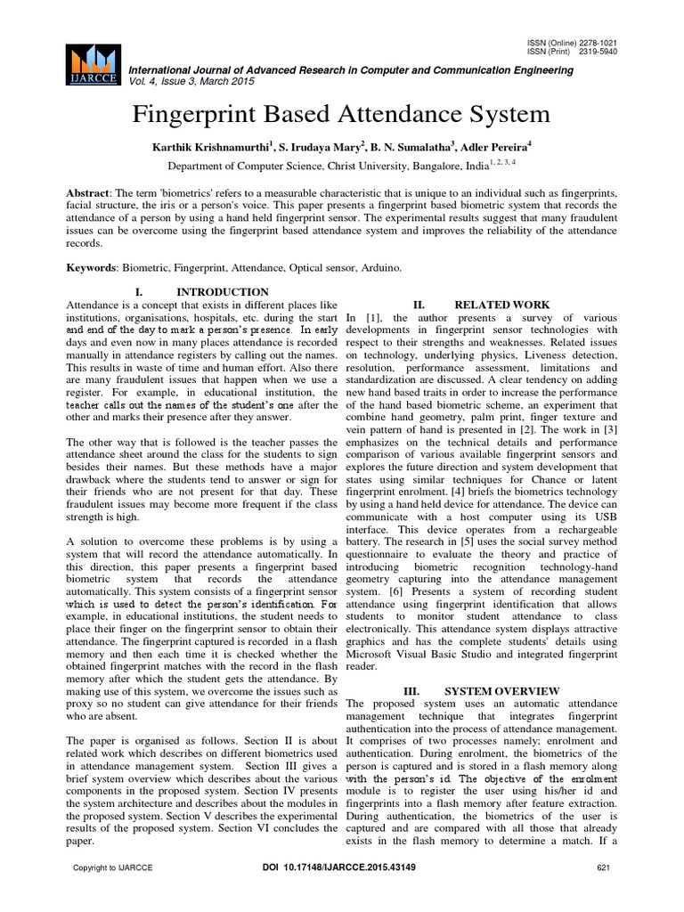 Pdf Fingerprint Based Attendance Management System