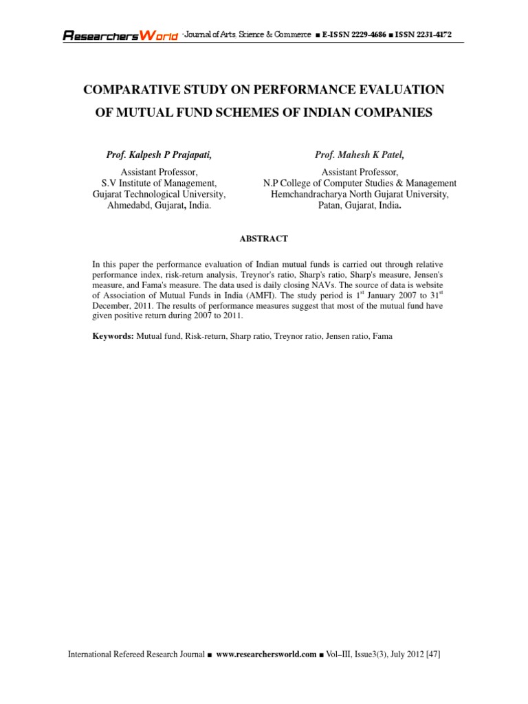Abstract For Comparative Study Of Mutual Funds