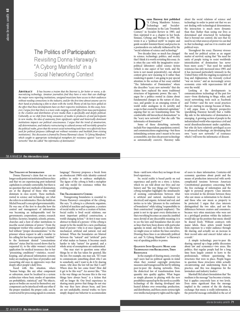 A Cyborg Manifesto A New Political Myth Based On Socialist
